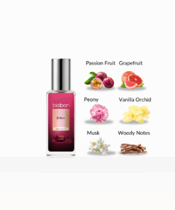 Biebon Seduce is a bold and captivating fragrance that celebrates confidence and allure. It opens with a sparkling burst of passion fruit, grapefruit, and pineapple, creating an irresistible fruity freshness. The heart reveals a delicate yet sensual bouquet of peony, red berries, and lily of the valley, while the base of musk and woody notes adds warmth and lasting sophistication.