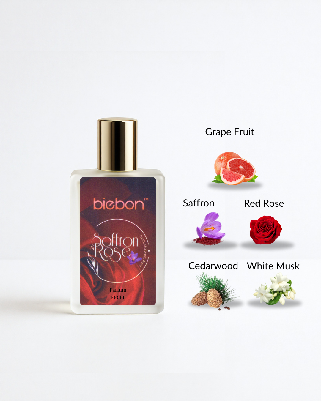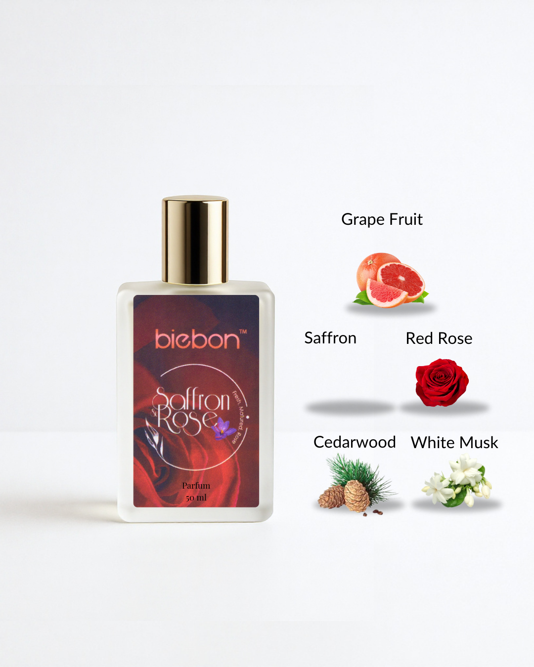 Ladies of Biebon, be enchanted with SAFFRON & ROSE for a sophisticated fragrance. Uplift your strong inner beauty and loveliness to society surrounding you.